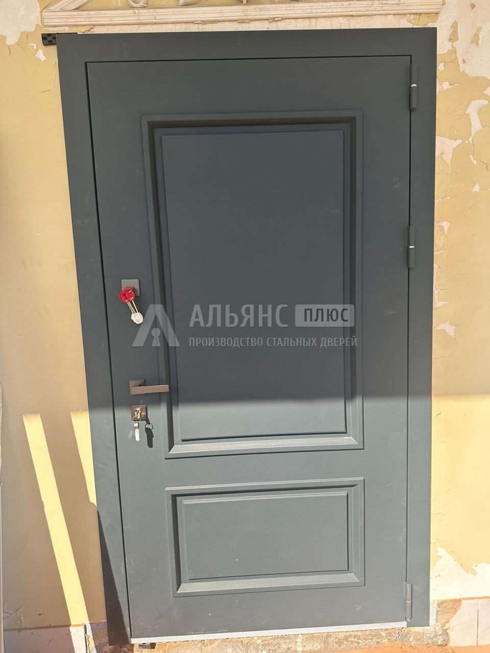 Хотел, чтобы фасад смотрелся современно, а внутри было уютно. В итоге взял железную входную: на улицу — графит с изогнутыми линиями, в дом — тёплая панель с аркой. Сделали быстро и под мой проём, наличники и доборы в цвет — проём «закрылся» аккуратно. Понравилось, что всё без лишнего блеска: глазок на удобной высоте, серебристая фурнитура, закрывается плотно и тихо. Был нюанс — маленькая царапка на доборе при доставке, ребята тут же подреставрировали, сейчас не найдёшь. По ощущениям — солидная и спокойная стальная дверь.