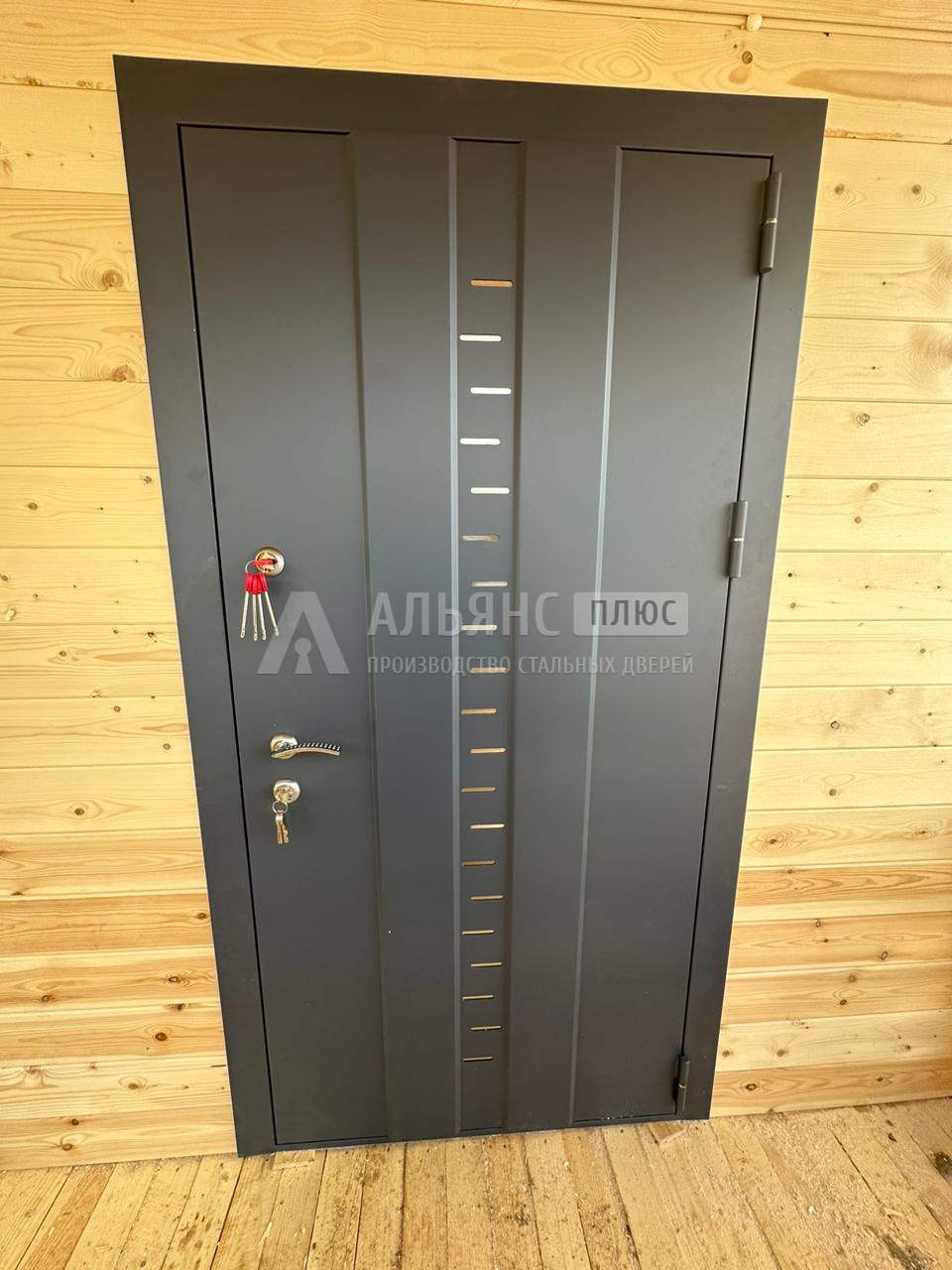 Ставили в частный дом входную металлическую дверь. Снаружи — порошковая окраска, дождь и грязь не видны; внутри — МДФ ПВХ «под дерево», получилось уютнее прихожей. Сделали по нестандартному размеру, фурнитуру взял матовую под остальной интерьер. Изготовили примерно за неделю, монтаж прошёл спокойно. Мелочь: поначалу язычок защёлки цеплял, мастер подрегулировал — теперь закрывается мягко.